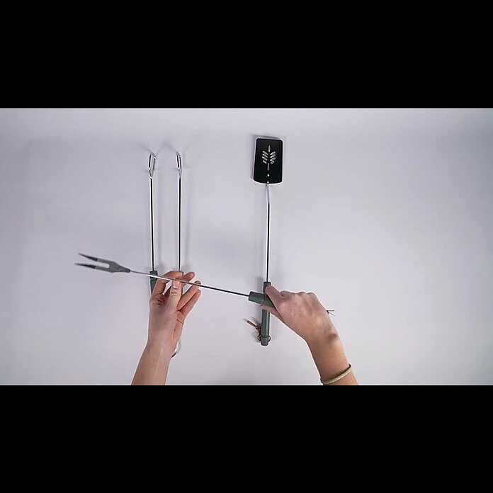 Das Grillstar Grillbesteck besteht aus einer Grillzange, einem Grillgutwender und einer Gabel. Es ist eine optimale Ergänzung zu Ihrem Grill. Das Grillbesteck lässt sich leicht reinigen und kann mit den Schlaufen platzsparend aufgehängt werden.