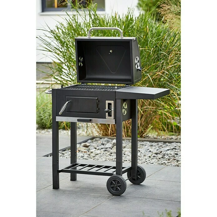 Der Grillstar Grillwagen Boston garantiert größtes Grillvergnügen und verspricht freudige Zeiten im Garten. Die stabile Konstruktion wird durch praktische Rollen unterstützt, mit denen der Wagen mühelos verschoben werden kann. Der Grill kann mit hochwertigem, pulverbeschichtetem Stahl überzeugen, was ihn sowohl robust als auch langlebig macht. Der Grillwagen bietet eine gleichmäßige Hitzeverteilung auf seiner einladenden Grillfläche von 45 x 32 cm. Ausgestattet mit praktischen Griffen und einem integrierten Thermometer, ist der Grill der Mittelpunkt jeder Grillparty.