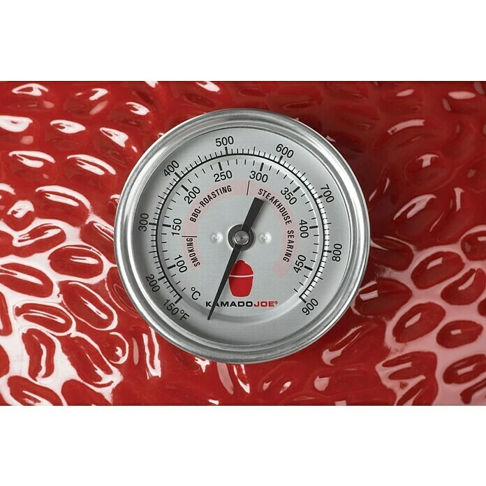 Der Kamado Joe® Classic II ist durch seine Flexibilität bestens sowohl für ein gemütliches Familiengrillen als auch für eine Grillparty in größerer Runde geeignet. Sein Grillrostdurchmesser von 46 cm mit einer Grillfläche von 623 cm² lässt sich durch das integrierte Kochsystem Divide & Conquer® flexibel auf bis zu 4300 cm² vervielfachen. Durch das hochwertige, dickwandige Keramikmaterial speichert der Kamado Joe® Classic II die Hitze optimal, sodass neben direktem und indirektem Grillen auch Backen, Braten, Kochen, Schmoren und Räuchern mit ihm möglich ist. Durch das eingebaute Deckelthermometer und das regulierbare Belüftungssystem, kann die Hitze- und Temperatursteuerung schnell und präzise erfolgen. Der gusseiserne Rollwagen, auf dem der Grill steht, sorgt zum einen für hohe Mobilität, zum anderen durch zwei feststellbare Rollen jederzeit für einen sicheren Stand. Die einklappbaren Seitenablagen bieten reichlich Platz für Zubehör. Zusätzlich werden hier auch die mitgelieferte Grillzange und der Ascheschieber untergebracht. Durch seine gute Isolierung hat der Grill einen geringen Holzkohleverbrauch und raucht wenig. In dem Alleskönner wird im Temperaturbereich zwischen 107° und 400°C Pulled Pork saftig gegart, Steak perfekt gegrillt oder Pizza und Brot knusprig gebacken.