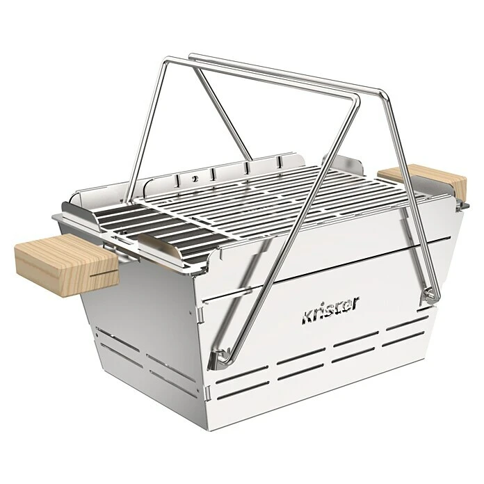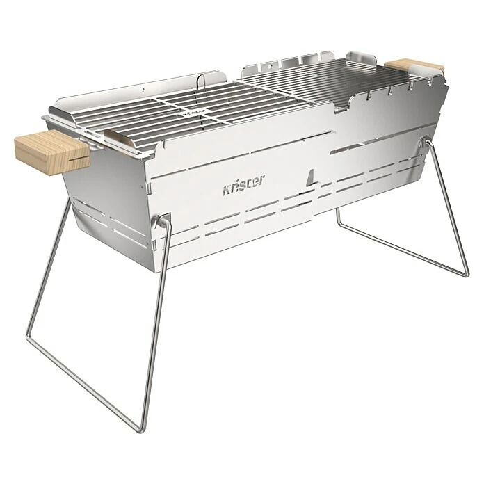 Mit dem Knister Holzkohlegrill Premium sind Sie ideal gerüstet für den nächsten Ausflug oder das nächste Grillen auf dem Balkon. Durch seine kompakte Größe ist er schnell verstaut und findet Platz in der kleinsten Lücke. Er ist komplett aus hochwertigem Edelstahl gefertigt, sodass er spülmaschinenfest und witterungsbeständig ist. Auf den 2,5 mm starken Edelstahlrosten lässt sich problemlos jeder Grillwunsch erfüllen. Und sollten es doch einmal mehr Personen sein, die Grillen möchten, lässt sich der Grill einfach auf die doppelte Größe ausziehen. Die umklappbaren Standbeine lassen sich bei Nichtgebrauch des Grills auch als Tragegriff nutzen, sodass sich der Grill wie ein Korb tragen lässt. Auch die Grillutensilien können so vor und nach dem Grillen direkt im Grill transportiert werden.