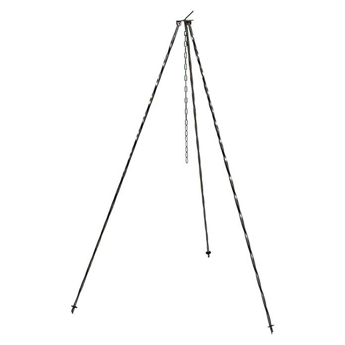 Der 3-Bein-Ständer von Siena Garden ist aus lackiertem Metall gefertigt und mit einer Hammerschlagoptik versehen. Er ist 150 cm hoch und passend für Feuerschalen bis Ø 100 cm. Im Lieferumfang sind Kette und S-Haken enthalten, sodass mit Einhängen eines passenden Rosts sofort gestartet werden kann. Um den Schwenkeffekt des Grills nicht zu beeinflussen, ist die Kettenaufhängung um 360° drehbar. Über Dornen am jeweiligen Fußende steht der Ständer stabil und sicher auf allen losen Untergründen.