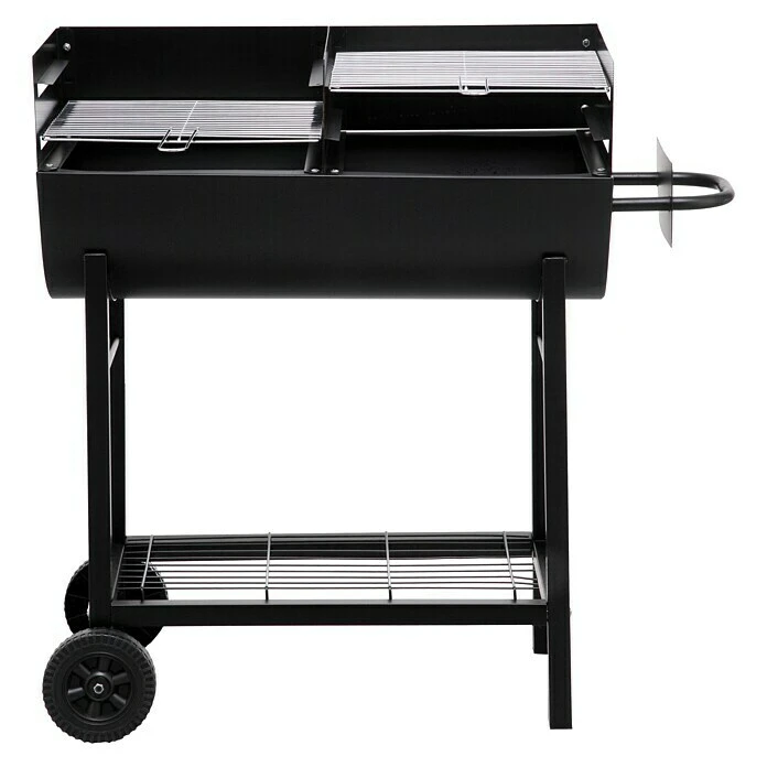 Der Tepro Holzkohlengrill Detroit ist ein echter Allrounder. Er besitzt eine große Grillfläche, auf der mit Leichtigkeit für mehrere Personen gleichzeitig gegrillt werden kann. Nicht nur groß genug für Grillgut von Familie und Freunden, auch bei Veranstaltungen oder auf der Vereinsfeier bietet er ausreichend Grillfläche, um jeden Hungrigen bedienen zu können. Der Ölfassgrill ist deshalb so praktisch und vorteilhaft, weil er auf der einen Seite über Rollen verfügt. Dadurch ermöglicht er flexiblen Grillspaß auf Balkon, Terrasse oder im Garten. Im unteren Bereich des Riesengrills ist eine Ablagefläche angebracht, auf der das Grillwerkzeug abgelegt oder weiterer Grillnachschub gelagert werden kann. Da die Grillfläche in zwei Grillroste geteilt ist, kann unterschiedliches Grillgut separiert voneinander zubereitet werden. Der Windschutz mit dreifacher Grillrosthöhenverstellung ist bestens für eine optimale Steuerung der Grilltemperatur geeignet.