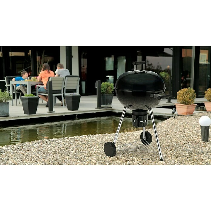 Der Kugelgrill Tucson von Tepro eignet sich hervorragend zum Grillen mit der Familie oder Freunden. Er besteht aus einer emaillierten Grillkugel mit Deckelthermometer und 3 Edelstahl Standbeinen, von denen 2 per Radachse verbunden sind, sodass der Grill bewegt werden kann. Das verchromte Grillrost besitzt einen Durchmesser von ca. 54 cm. So bietet der Grill genug Platz für allerlei Grillgut. Die Hitzeregulierung wird per Lüftungsschieber ermöglicht. Mit Hilfe zweier Holzkohlehalter, die sich bei Bedarf in den Grill einsetzen lassen, kann mit dem Tucson auch indirekt gegrillt werden. Auf dem verchromten Bodengitter lässt sich zudem noch das ein oder andere Zubehörteil ablegen. Mit den 2 wetterfesten Kunststoffrädern kann er im gesamten Garten bewegt werden, sodass immer am schönsten Platz des Gartens die Grillparty steigen kann.