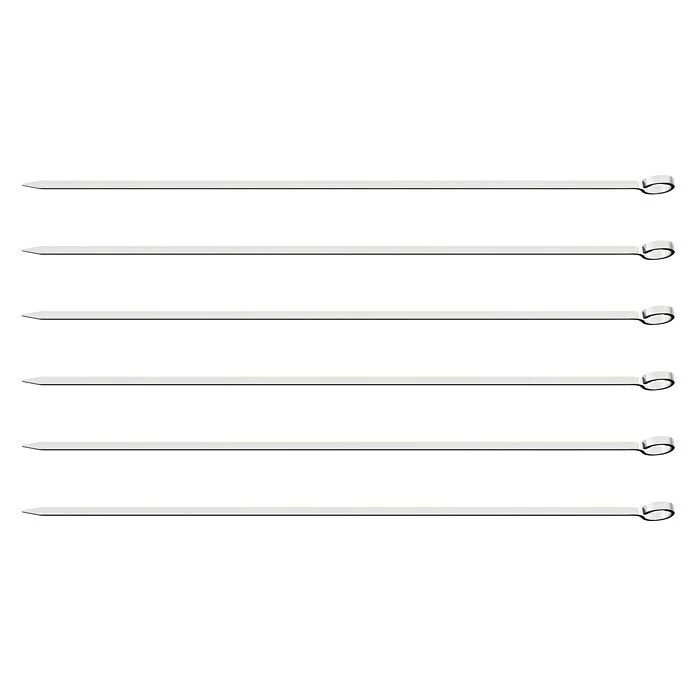 Die Tramontina Grillspieße sind ein Set aus 6 rostfreien Edelstahl-Grillspießen AISI 430 (entspricht DIN 1.4016). Die Grillspieße eignen sich zum Grillen von Fleisch und frischem Gemüse. Das Grillspießset ist lebensmittelneutral und spülmaschinengeeignet.