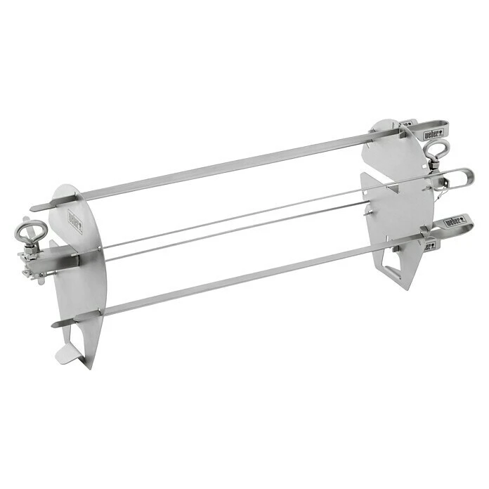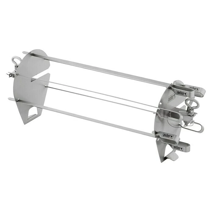 Mit diesem Grillspieße Set der Weber Crafted Siere gelingen Schaschlik, Garnelen, Gemüse und weitere Spießgerichte perfekt. Die 6 Spieße und die Haltung sind komplett aus Edelstahl gefertigt und somit langlebig und leicht in der Spülmaschine zu Reinigen. Für die Nutzung wird die Halterung auf einen Drehspieß geschoben und die einzelnen Grillspieße in die Halterung gesteckt. So wird das Grillgut von allen Seiten gleichmäßig gegrillt. Hinweis: Für den Gebrauch ist ein passender Drehspieß erforderlich, der nicht im Lieferumfang enthalten ist.