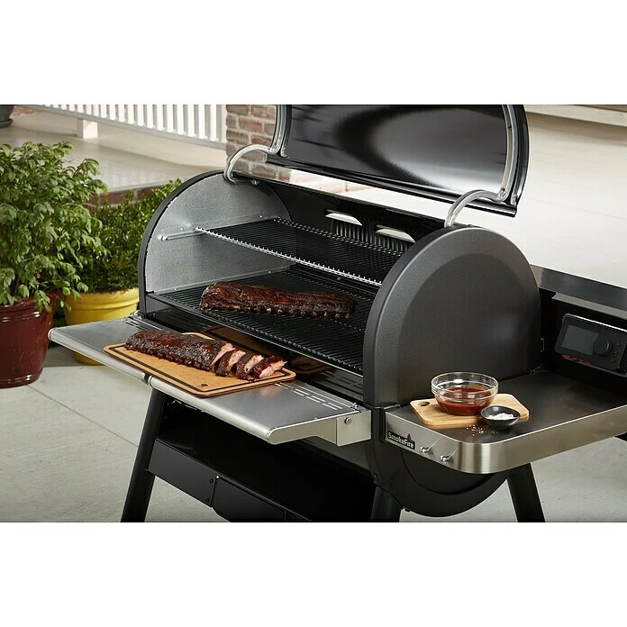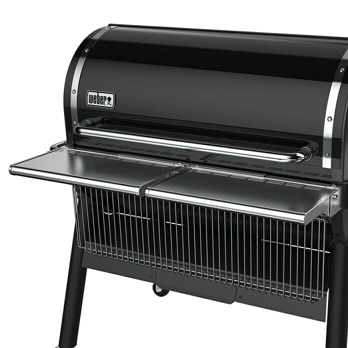 Der Weber Fronttisch SmokeFire aus Edelstahl ist passend für den Weber Pelletgrill Smokefire EX6 GBS. Er bietet zusätzlichen Arbeitsplatz von ca. 2.250 cm². Der zweigeteilte Tisch hat eine Tragkraft von bis zu 9 kg pro Ablage und kann bei Nichtgebrauch eingeklappt werden.