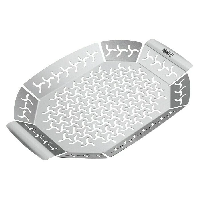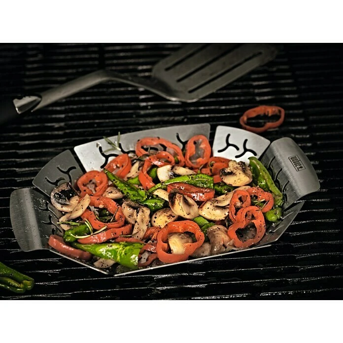 Der Weber Gemüsekorb ist optimal für die aromatische Zubereitung von gewürfeltem oder gestiftetem Gemüse und empfindlichen Beilagen wie beispielsweise Garnelen oder kleineren Fleischstücken. Mithilfe dieses Grillkorbs wird Ihnen ein gesunder Genuss garantiert. Dank des patentierten Designs wird eine Verformung minimiert, sodass Sie lange Spaß mit dem Gemüsekorb haben werden.